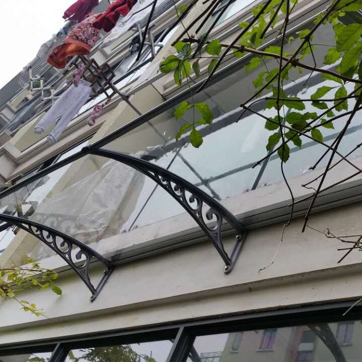 Polycarbonate awnings can be installed over doors, windows, outdoor air-conditioners, ATMs, outdoor mailboxes, etc. to keep out the sun and rain. The sturdiness can let a 4.5kg iron ball smash down directly without damage, the life span is 8-15 times that of ordinary canopies, the test accelerated ageing result is that the outdoor design can be used for more than 15 years under bad weather conditions. The quality of window canopy assemblies is protected by patents and is stable and guaranteed.